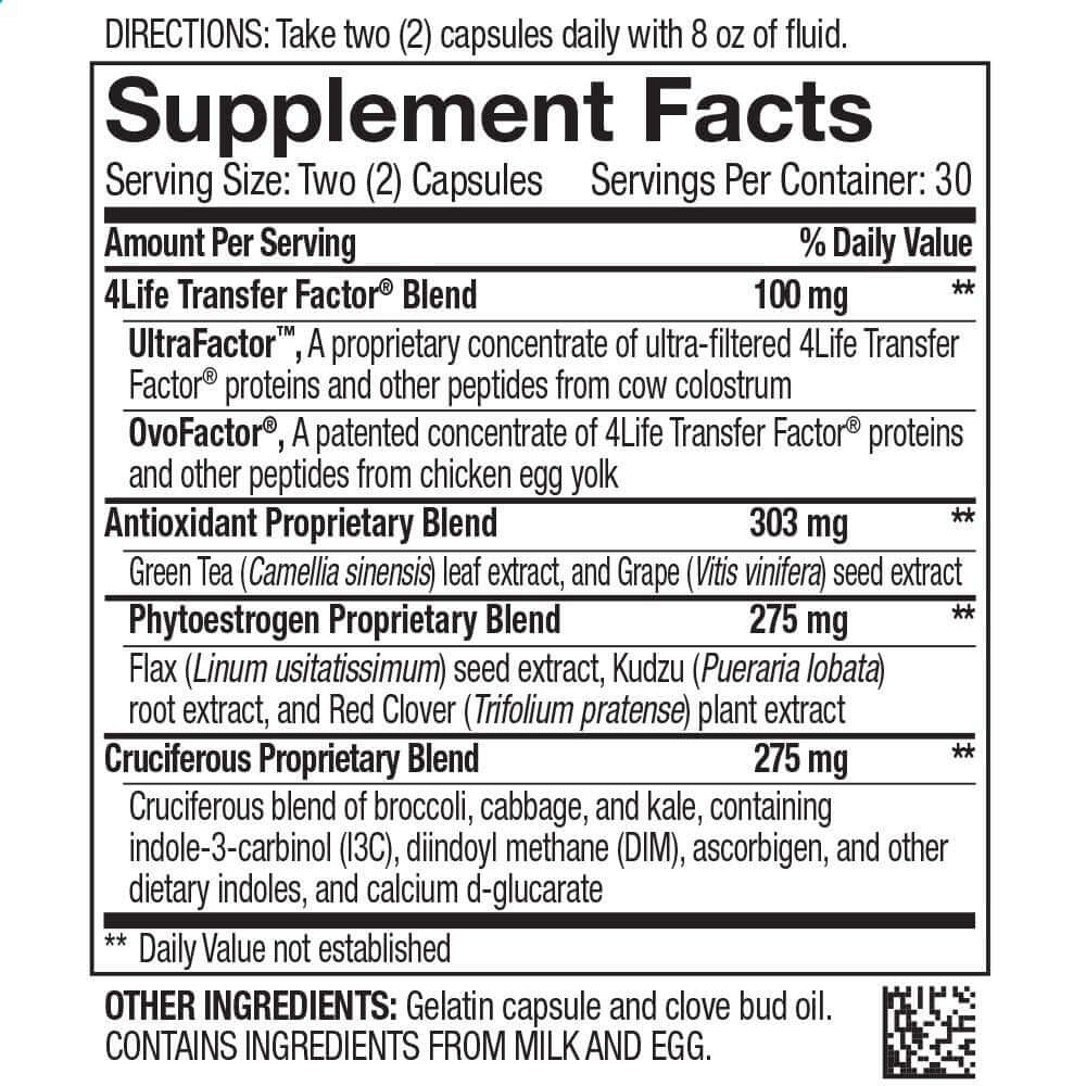 ¡Celebra tu feminidad! 4Life Transfer Factor Belle Vie promueve el equilibrio hormonal saludable, la salud reproductiva y la salud de los senos. Una potente y patentada mezcla de fitoestrógenos de kudzu, lino y trébol rojo respalda la salud del sistema endocrino y la función celular saludable, mientras que el té verde y el extracto de semilla de uva ofrecen respaldo antioxidante. Además, contiene 4Life Transfer Factor® para educar y mejorar el sistema inmunológico. Tome dos (2) cápsulas al día para apoyar la salud reproductiva y mamaria femenina.*