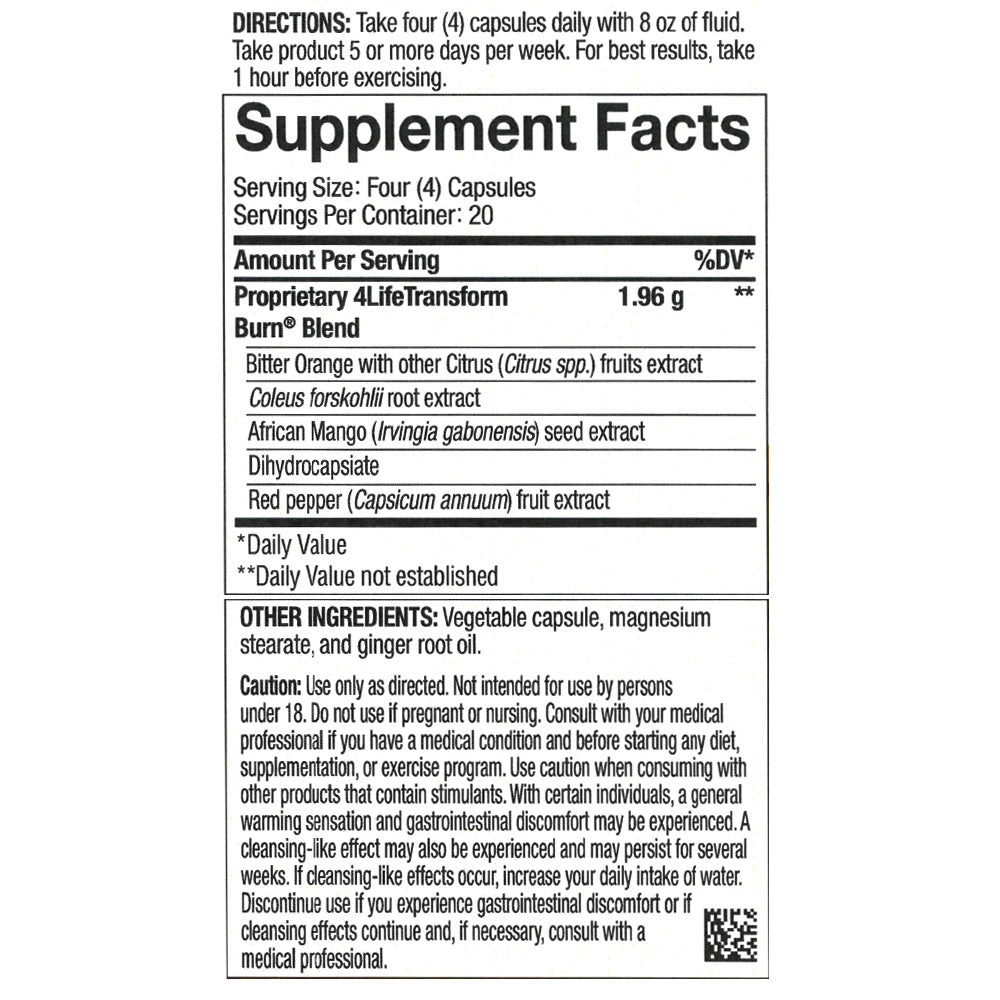 Ignite fat burning and support accelerated body transformation with 4LifeTransform Burn, a patent-pending thermogenic formula designed to increase calorie burning, enhance fat metabolism, and support appetite control.* Burn helps your body work smarter by increasing thermogenesis and metabolic efficiency—so you don’t just feel the burn, you see it.